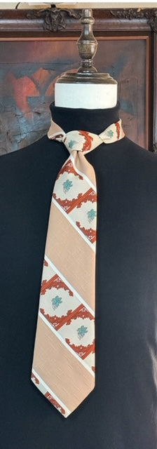Vintage 1950s Story Carvats Necktie. Tan, Beige, Teal, and White. Made in the USA.