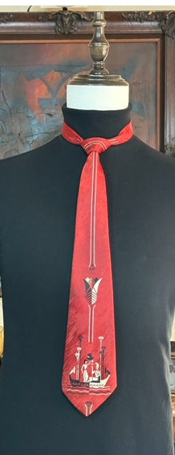 Vintage 1960s Wembley "Romance" Necktie. Red, Black, and White. Made in the USA.